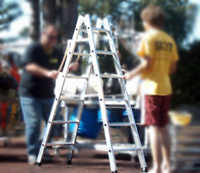Leiter mit sechs Stufen (Baumarkt, ca. 150€)